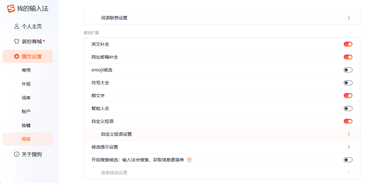 事情的起因单纯是因为我需要能够不打开搜狗输入法辅助工具的情况下能输出直角括号 。 搜狗输入法有一个很好用的功能叫自定义短语 在里面可以自行设置各种简写自动映射的内容,这样就能实现最终的目标。